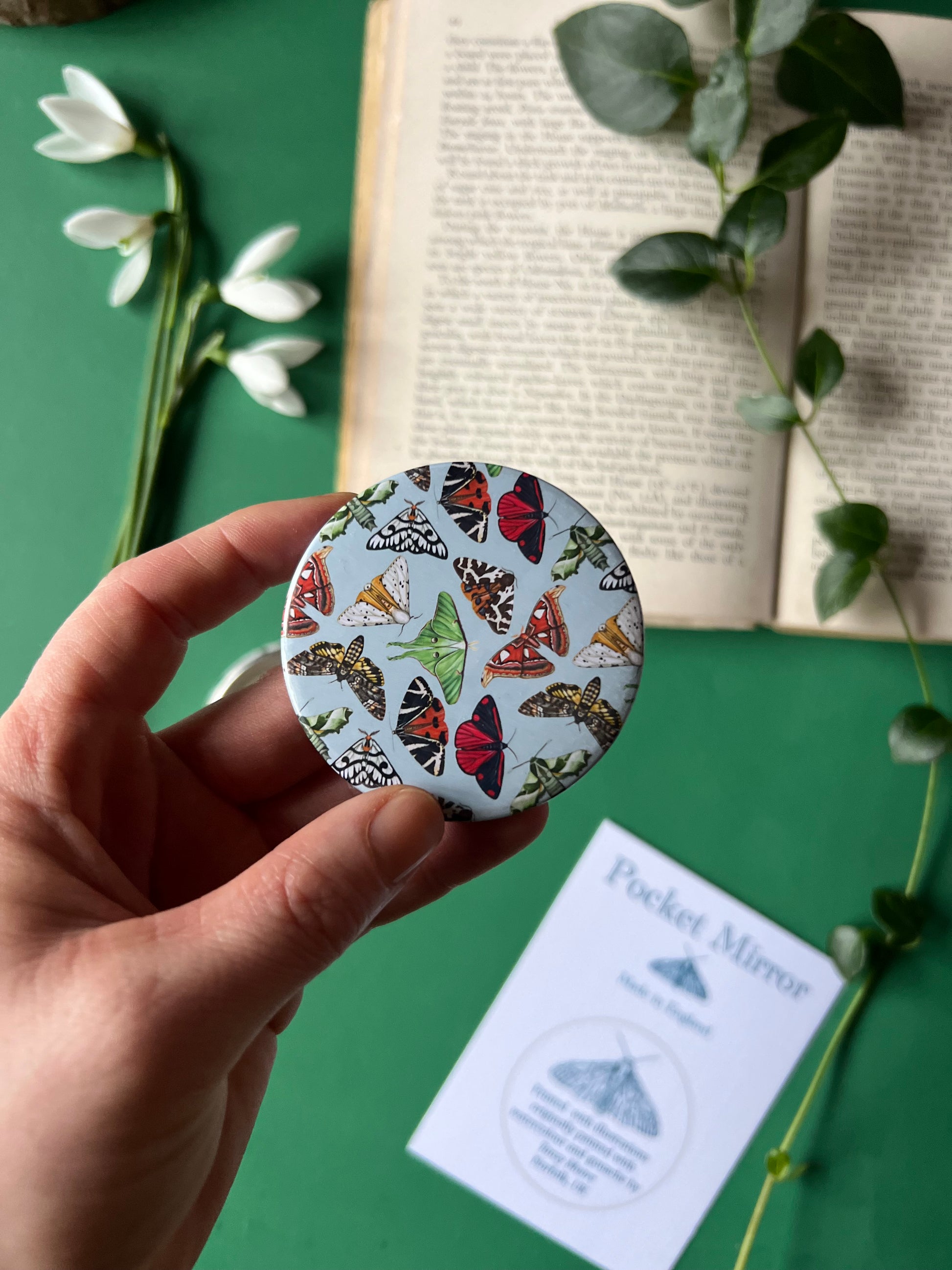 Pocket mirrors are all printed and individually made at my home in North Norfolk, Uk.